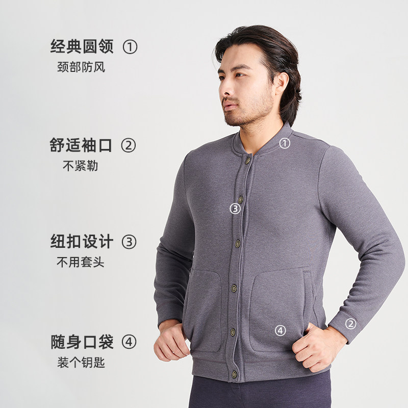青少年秋衣男式 猫人德绒发热保暖上衣男士 内衣上身加厚防寒打底衫