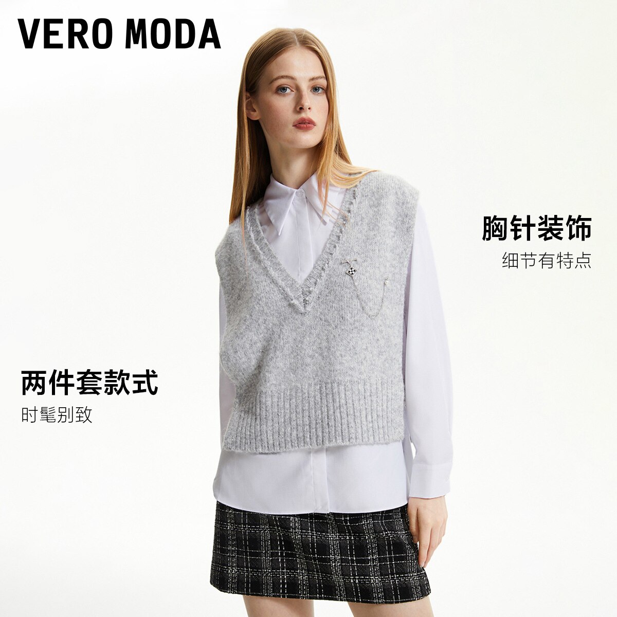 Vero 女秋冬清仓气质简约上衣两件套百搭 Moda奥莱针织背心衬衫