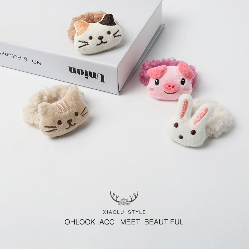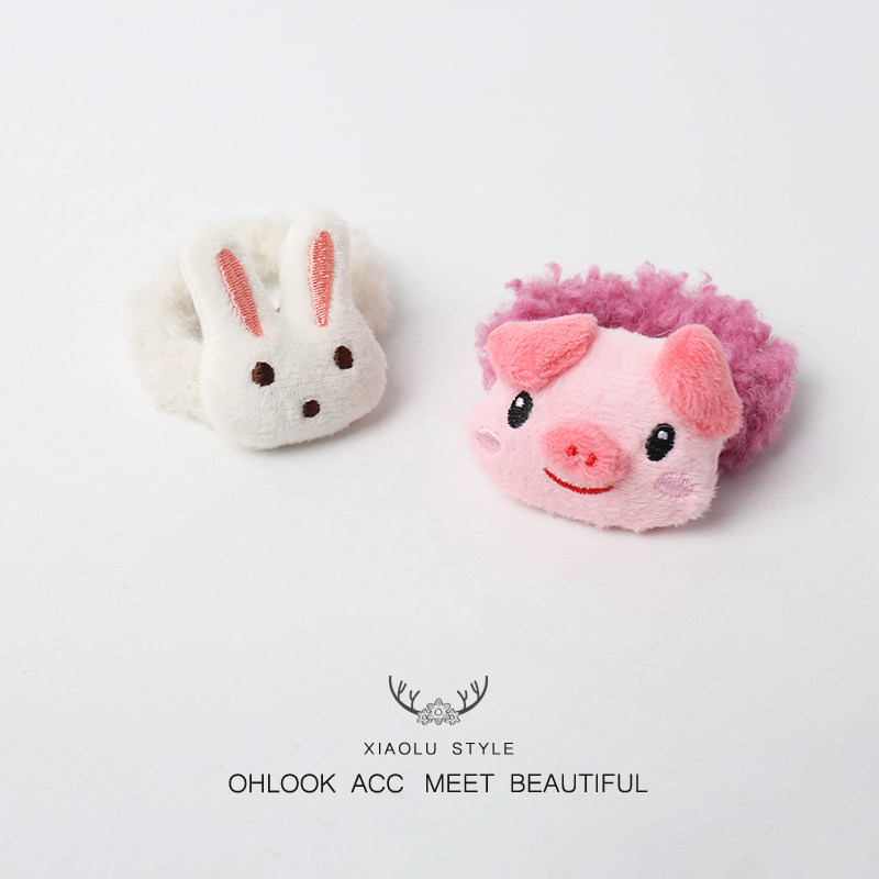 日韩可爱毛绒发圈小猫咪小猪发绳少女学生扎马尾头绳发饰甜美