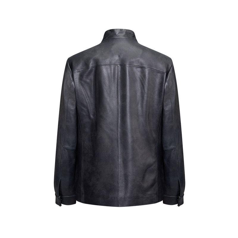 堡尼秋冬新品 云雾纹单皮衣男 商务立领保暖外套羊皮短款