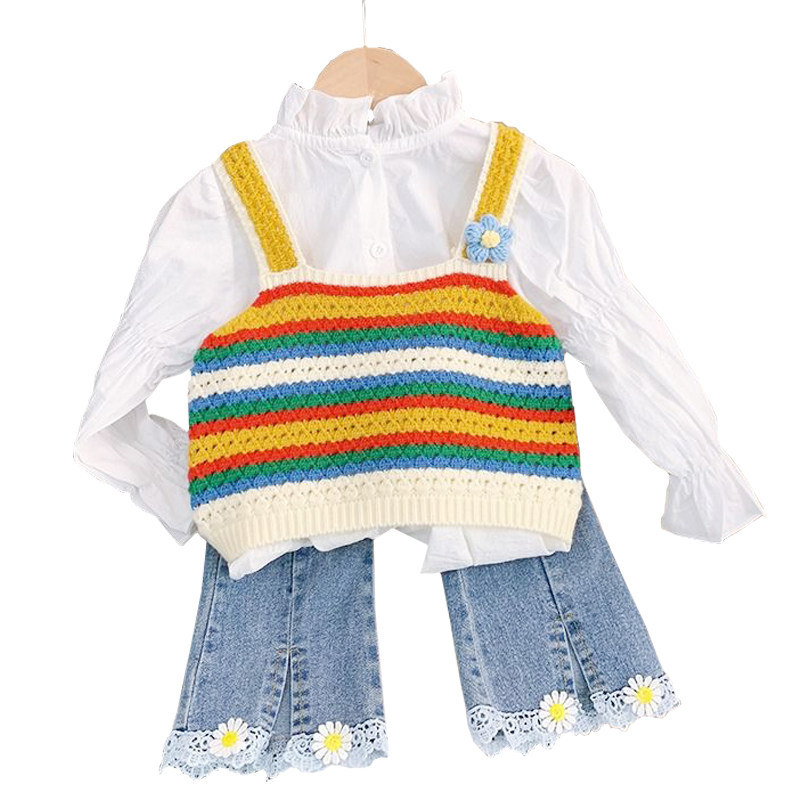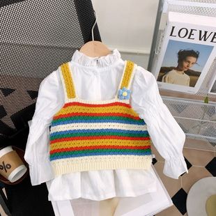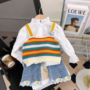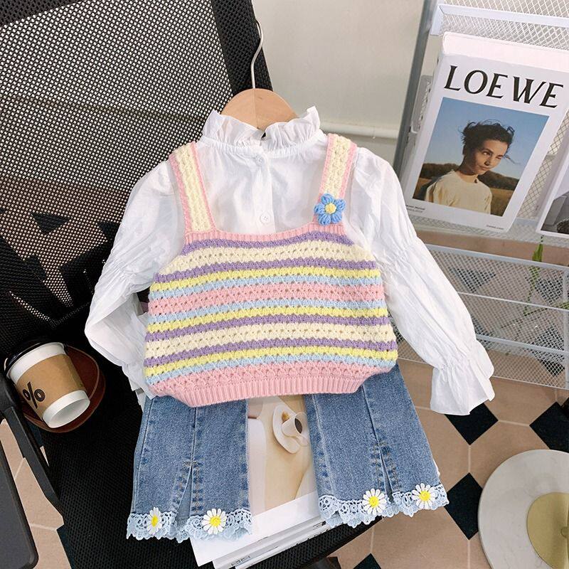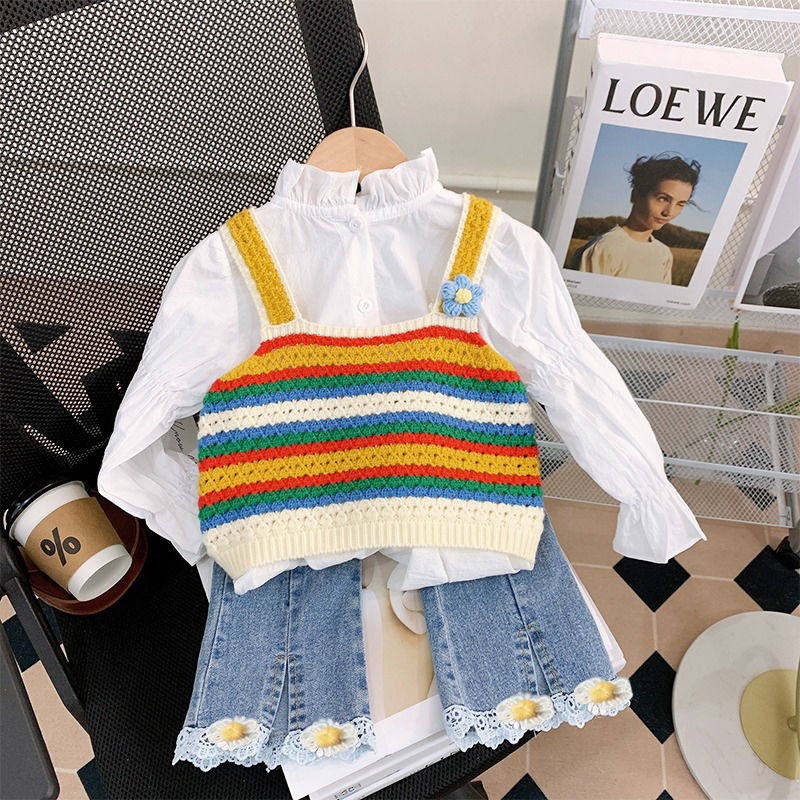 儿童衣服洋气马甲童装 2026新款 宝宝小女孩三件套潮 春秋季 女童套装