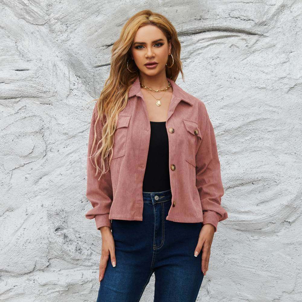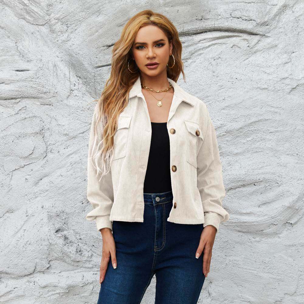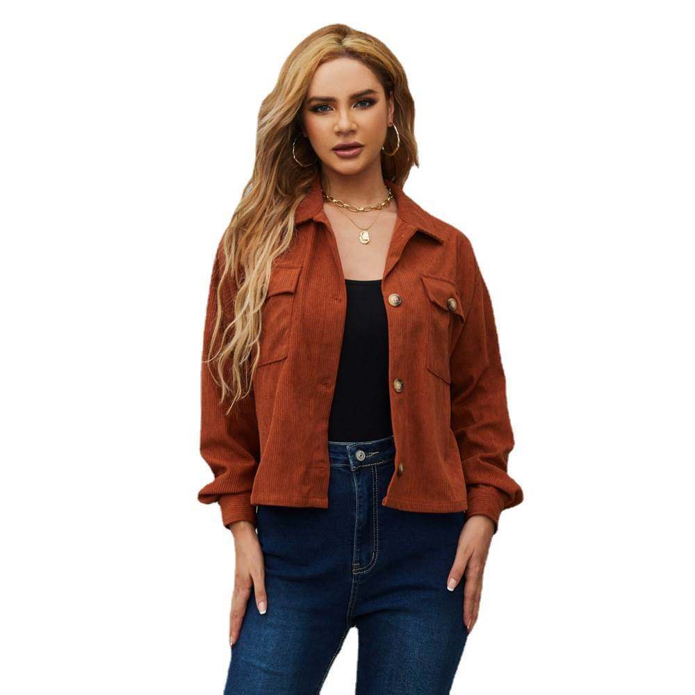 long sleeve jacket Short 外套 solid corduroy women 2022 coat