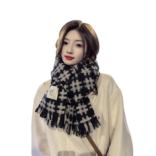 百搭保暖大披肩仿羊绒围脖情侣 高级感韩版 格子围巾冬季 女2025新款