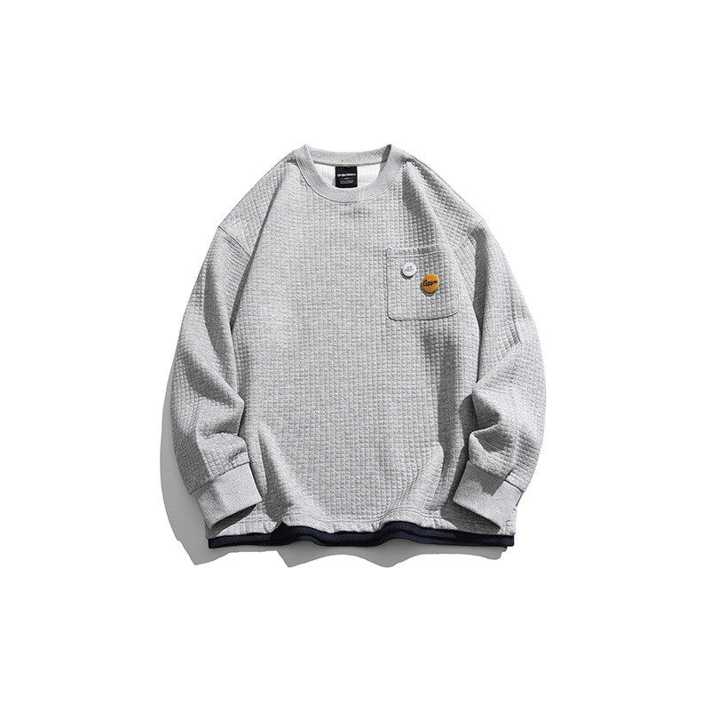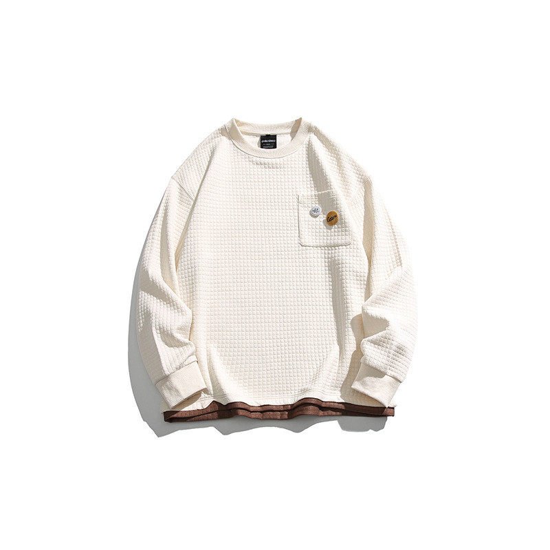 2023春季 男日系纯色华夫格假两件圆领套头宽松卫衣 新款