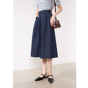 betu百图蓝色垂感牛仔半身裙女2026年春季 高腰中长裙A字裙 新款