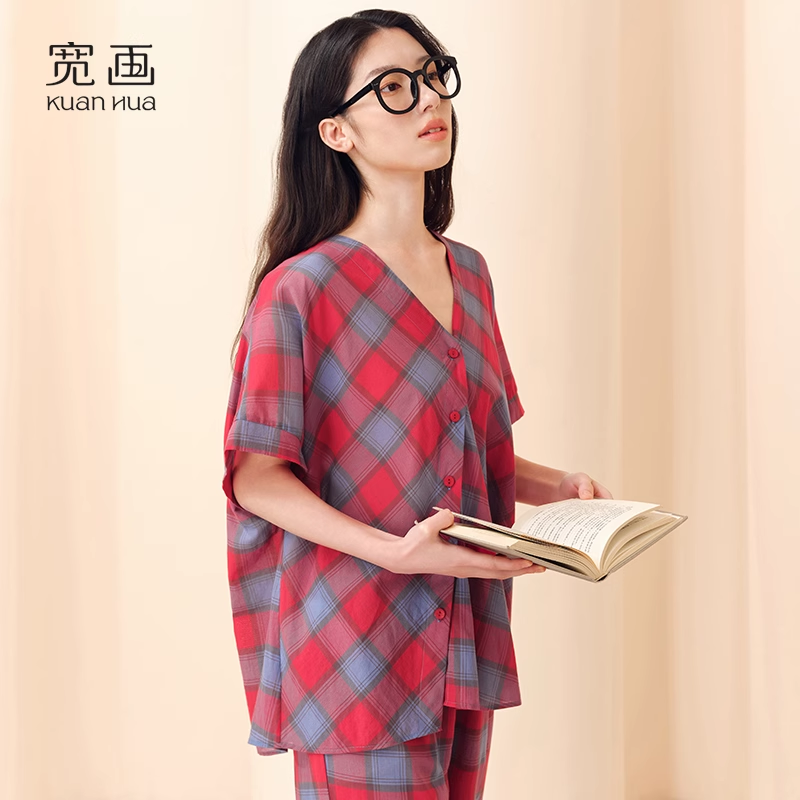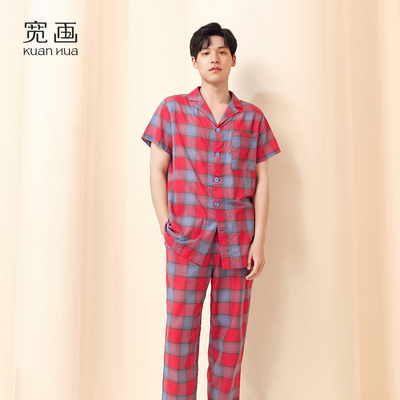 全棉时代睡衣男女士针织家居服情侣套装 7A抗菌除螨纯棉睡衣春秋季