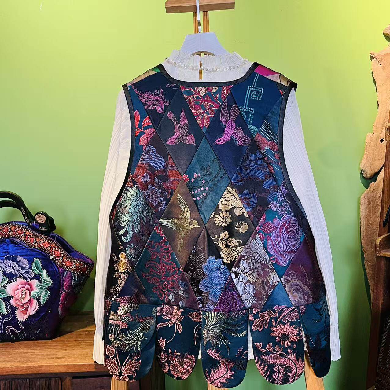 四两老绣缎面设计款 刺绣马甲