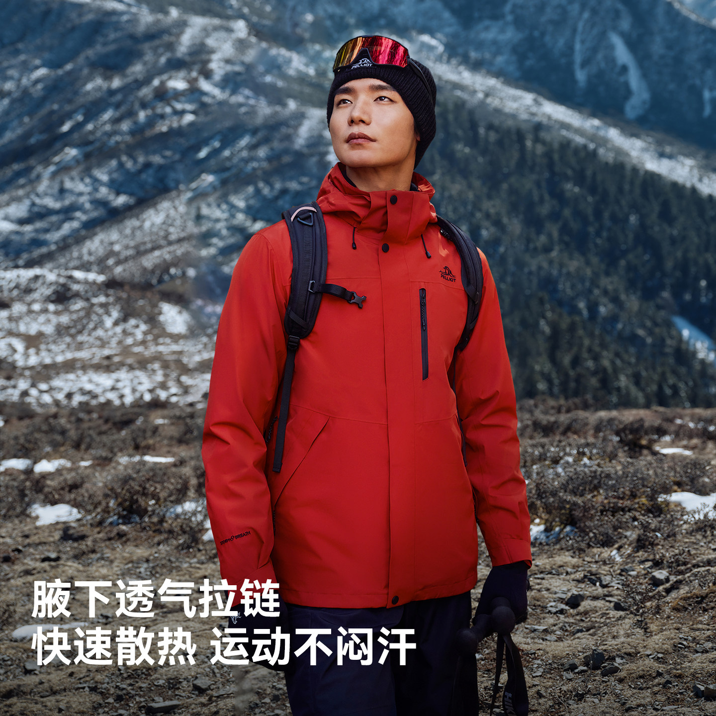 明星同款 拓路者户外抓绒三合一防水防风外套男女 朱雀冲锋衣