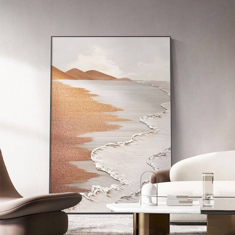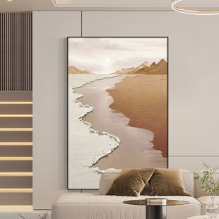 一帆风顺客厅极简沙发背景墙装 饰画肌理油画布高级感入户玄关挂画