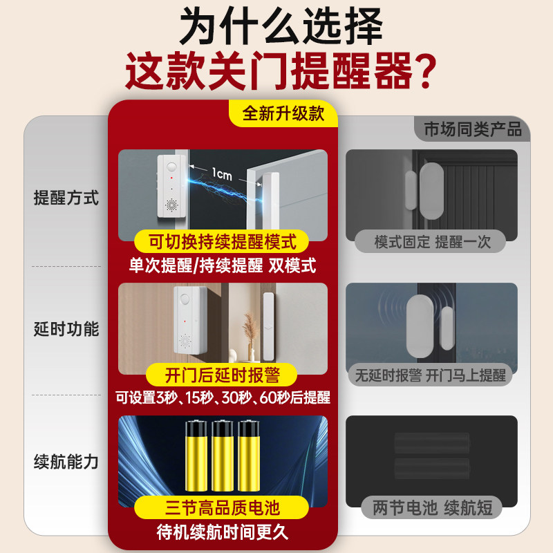 窗门磁防盗报警器老人延时未关门提醒器开门冰箱家用感应玻璃忘记
