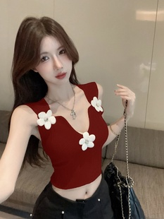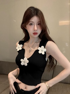 修身 花朵针织吊带背心女外穿夏季 短款 纯欲甜辣妹无袖 抹胸上衣 泰式