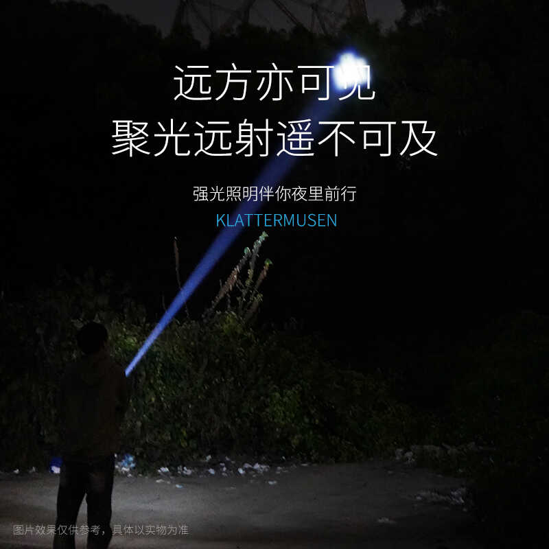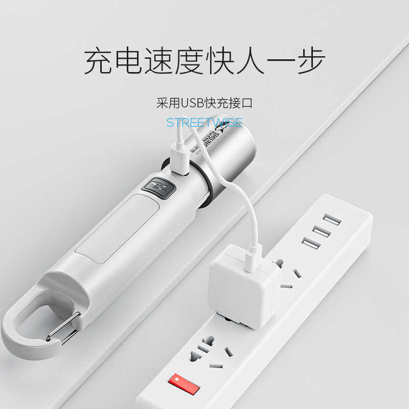 微笑鲨户外强光手电筒家用应急便携高亮长续航多功能可充电照明灯