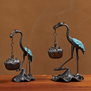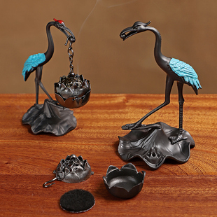 仙鹤莲花悬挂炉无粘粉小祥云创意熏香炉复古合金玄关香道摆件香炉