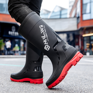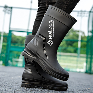 加棉赶海胶鞋 德系雨鞋 男防滑束口中长筒高筒防水户外露营钓鱼水鞋