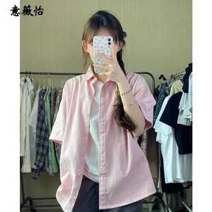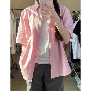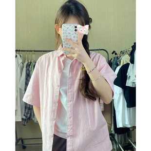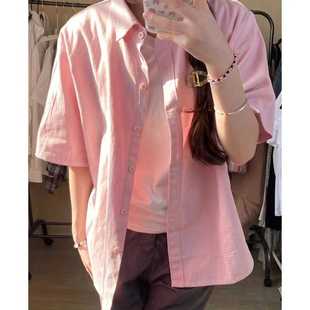 基础色衬衣宽松半袖 女夏季 设计感慵懒风 衬衫 多巴胺穿搭粉色短袖