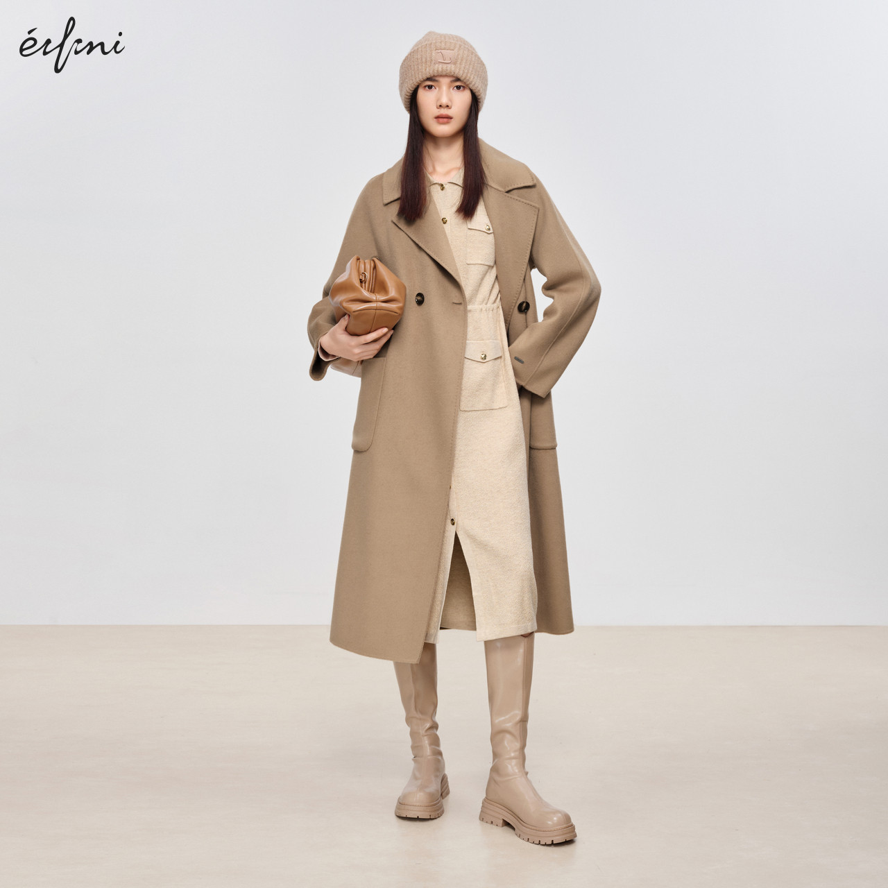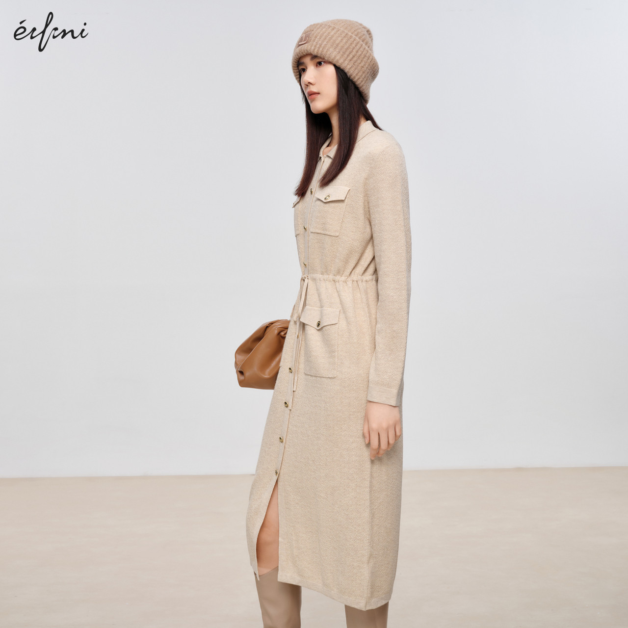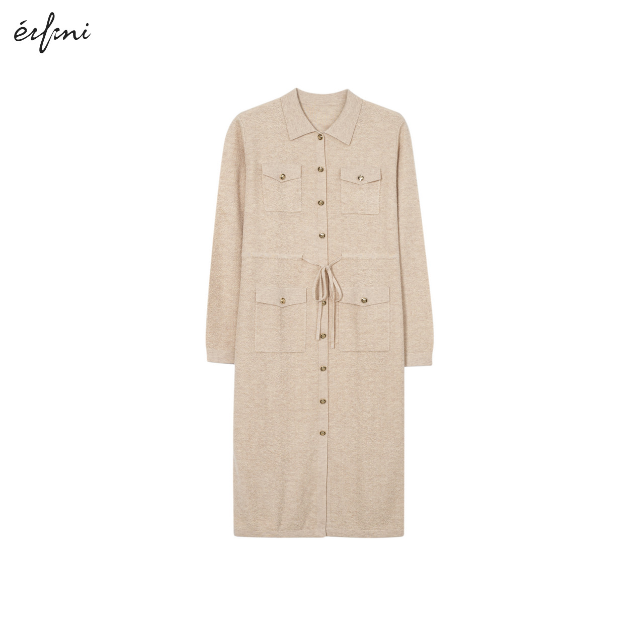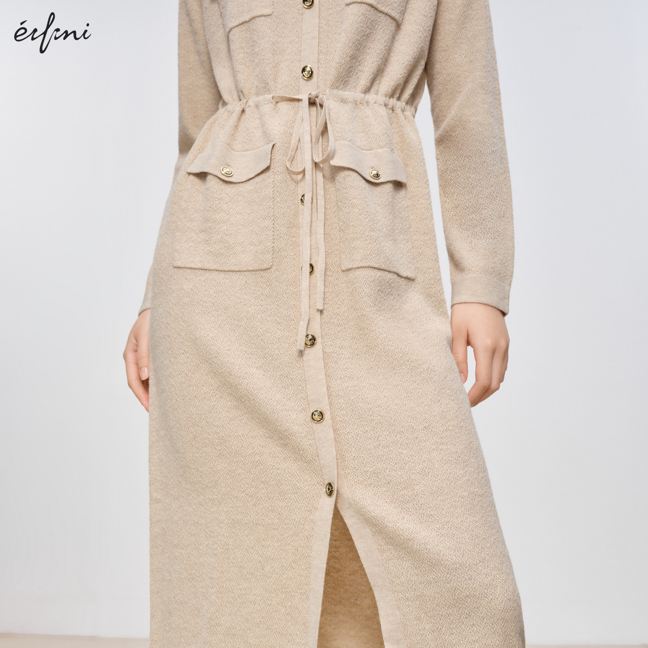 1EA393371 伊芙丽设计感系带收腰休闲连衣裙女秋季 商场同款