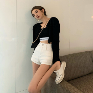 女夏季 高腰显瘦包臀a字热裤 薄款 2024年新款 韩版 白色紧身牛仔短裤