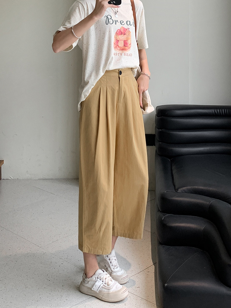 xxs码 穿搭高腰垂感八分阔腿哈伦裤 女夏季 小个子150七分日系休闲裤
