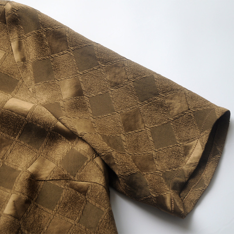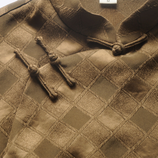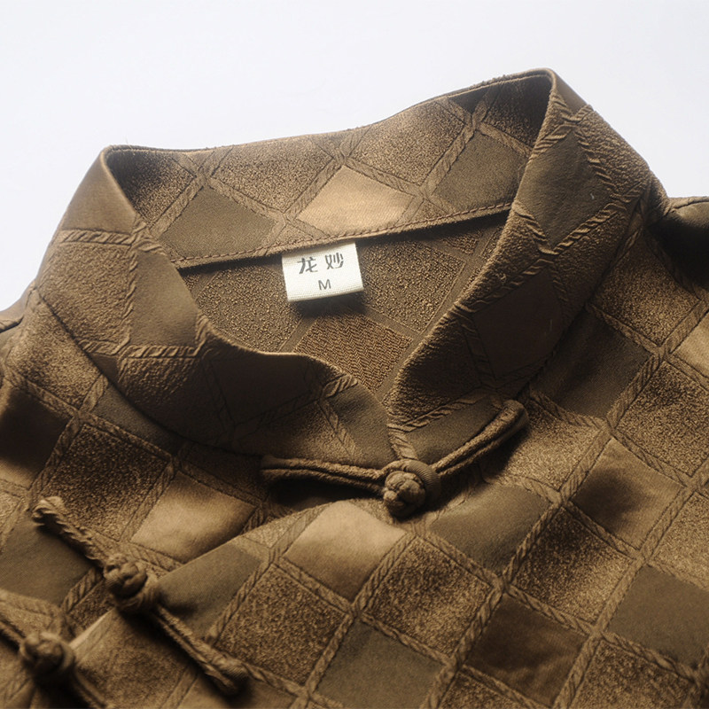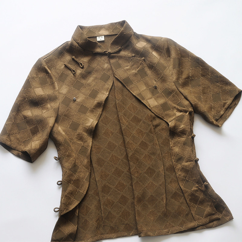 2025夏季 女装 新款 真醋酸提花盘扣中式 咖啡色 四分袖 龙妙旗袍上衣