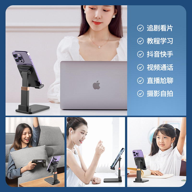 懒人手机支架桌面适用ipad平板2025新款 通用折叠便携升降调节稳固金属架直播拍摄视频办公室床头学习多功能架