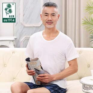 宽松文化衫 老头汗衫 中老年人爸爸T恤全棉纯棉短袖 上海菊花牌男士