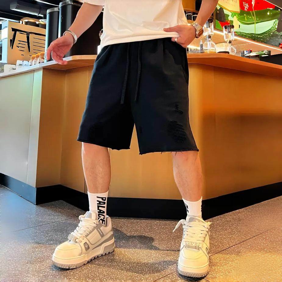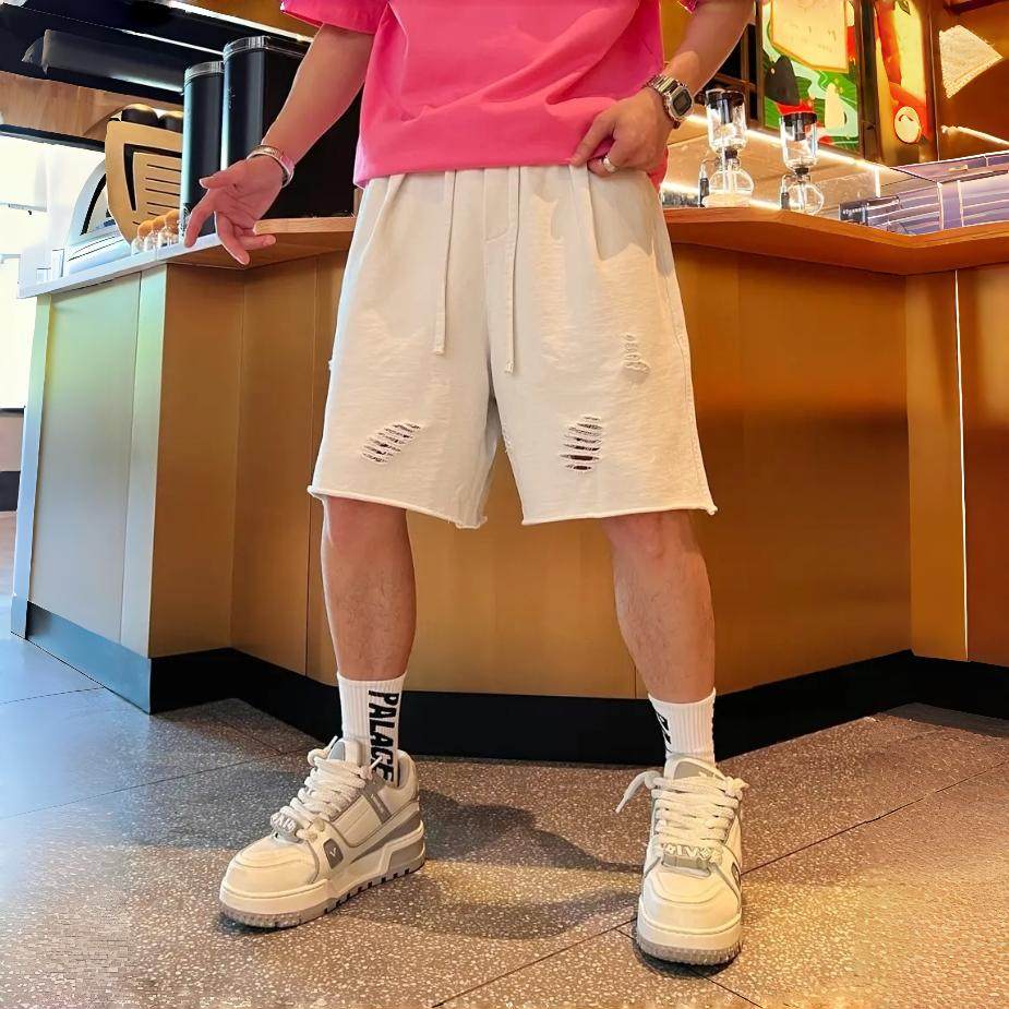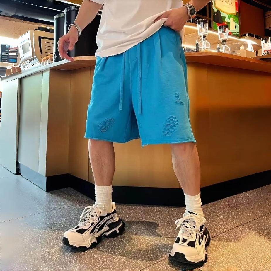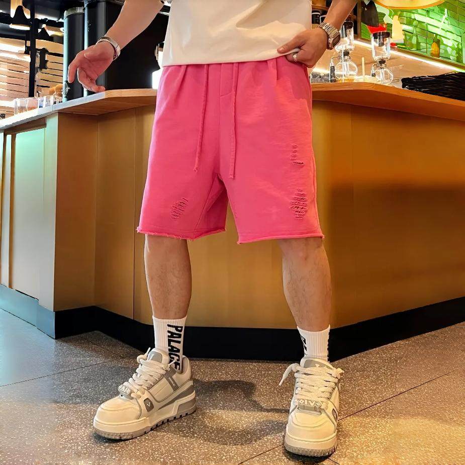 潮流多巴胺沙滩休闲短裤 百搭海边运动五分裤 男士 破洞时尚 美式 夏季