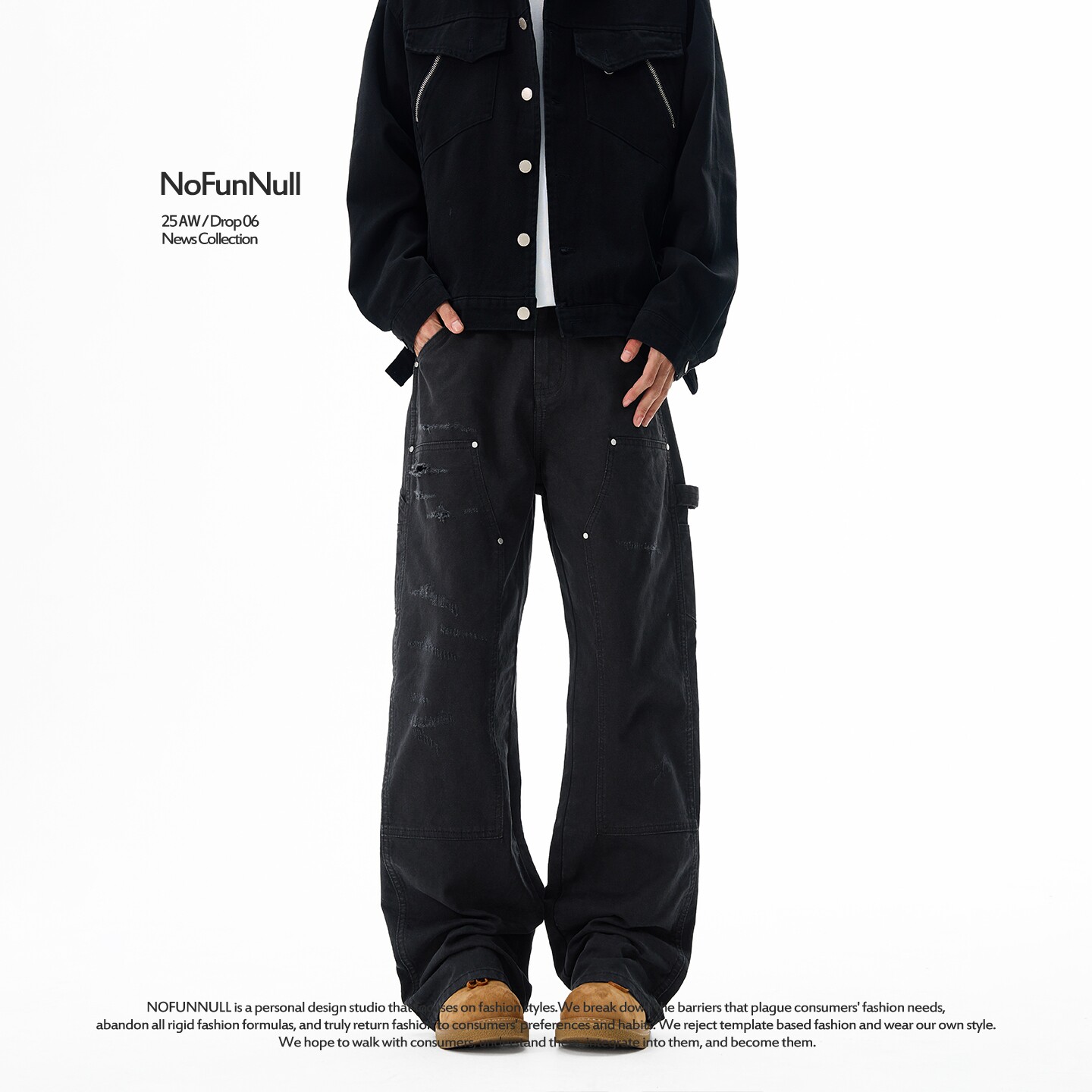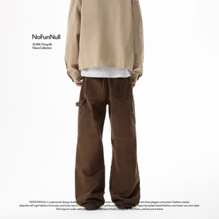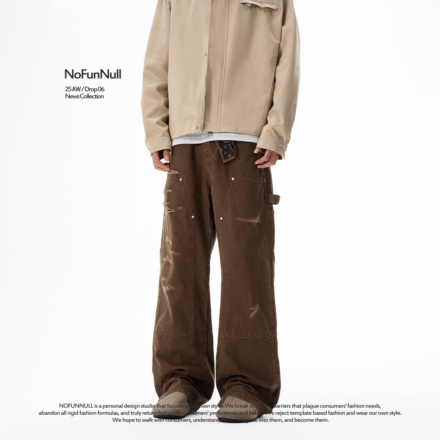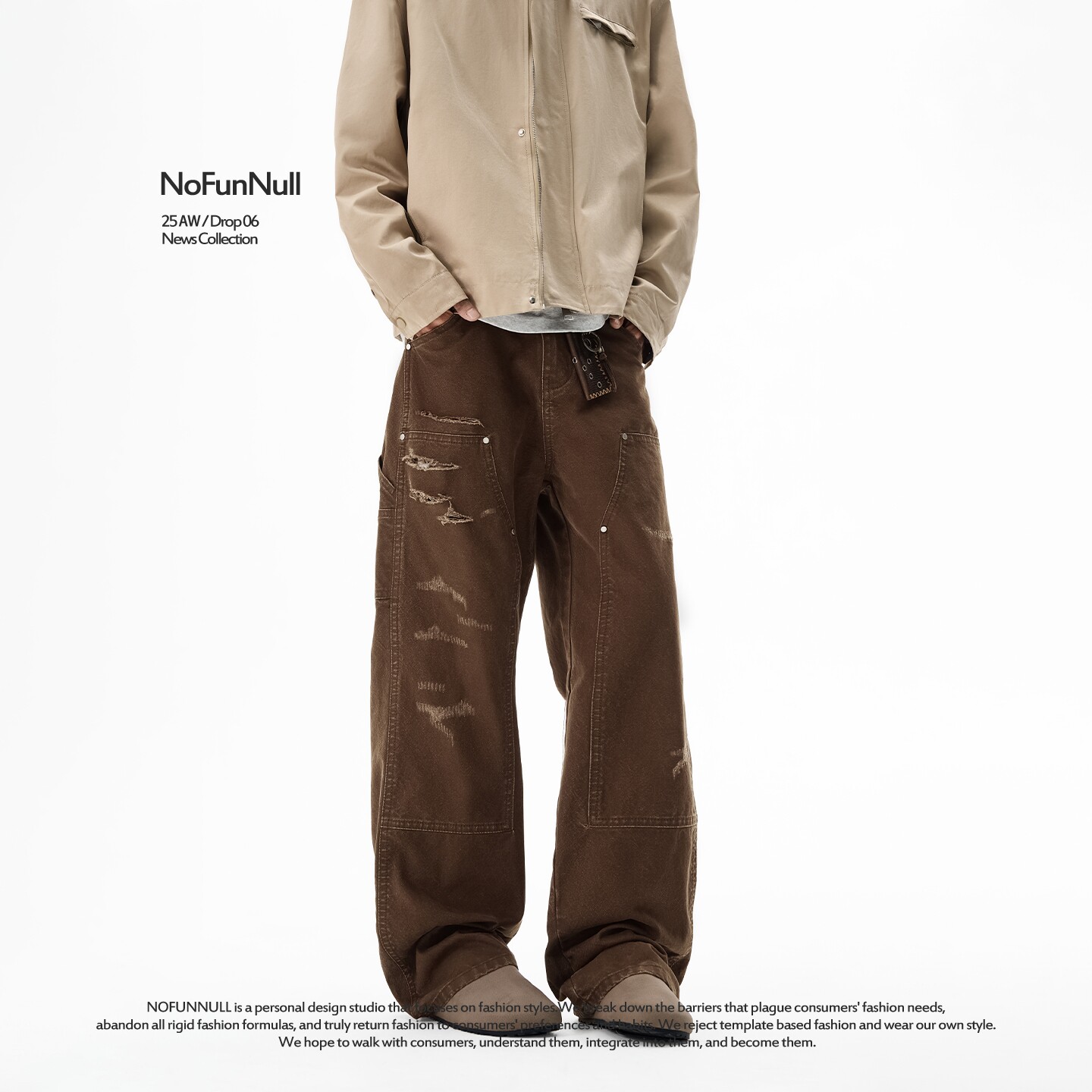 裤 NOFUNNULL美式 男高街磨烂铆钉直筒工装 型微喇牛仔裤 复古2021M版