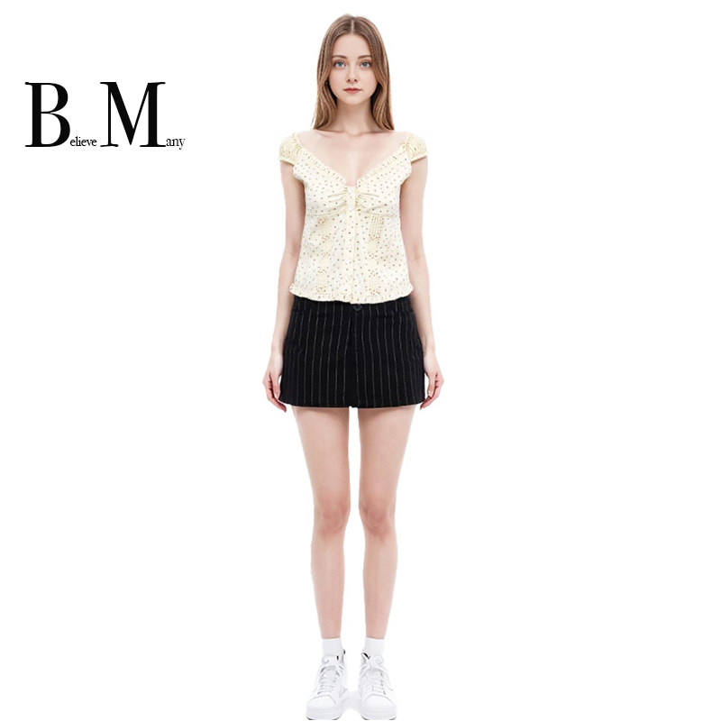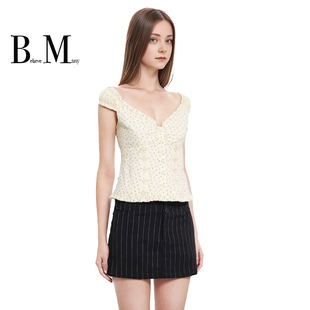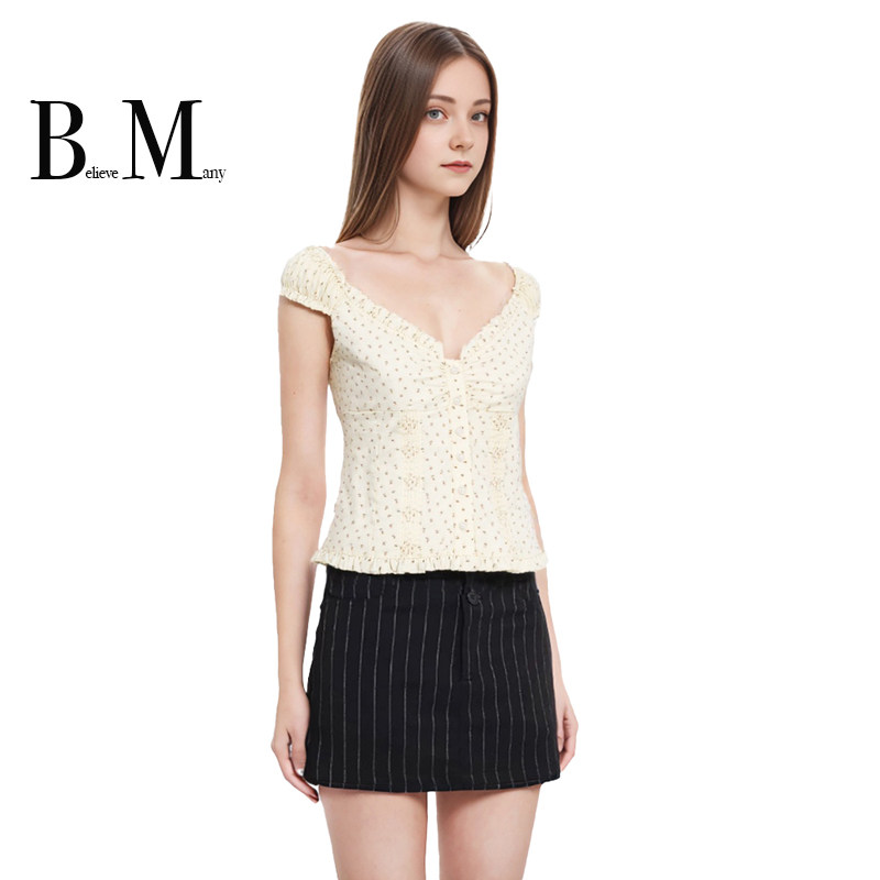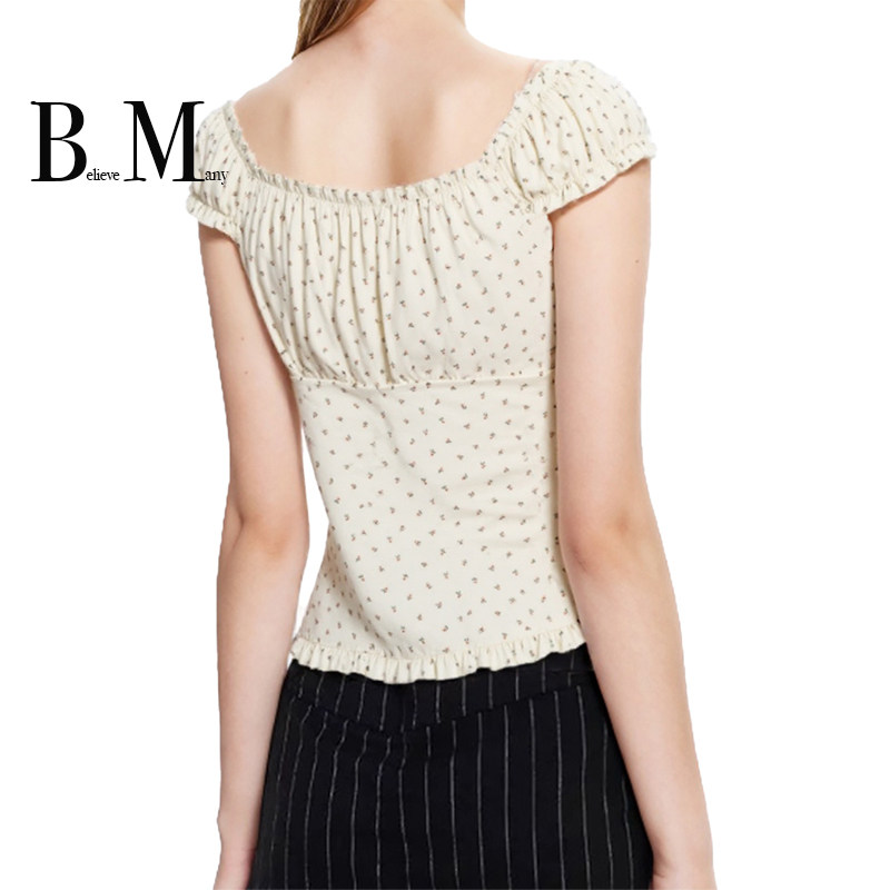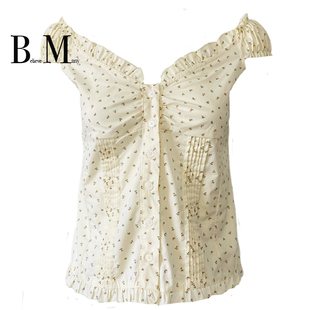 小碎花露肩氛围感束腰纽扣背心小衫 BM甜美花边下摆上衣 藤姐同款