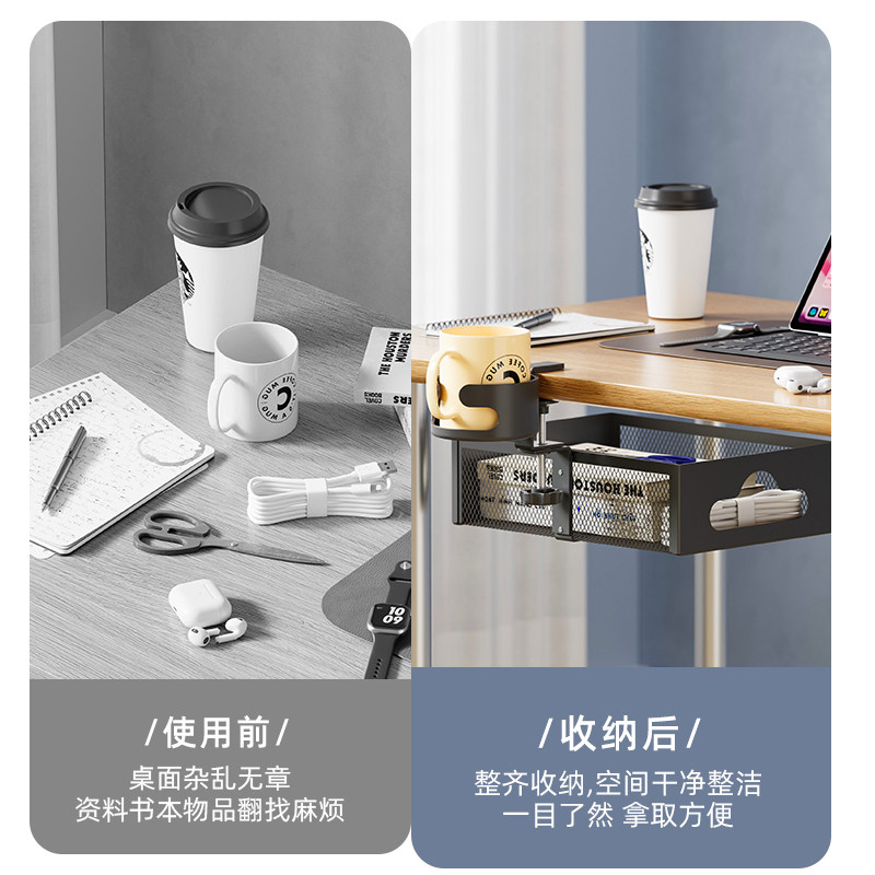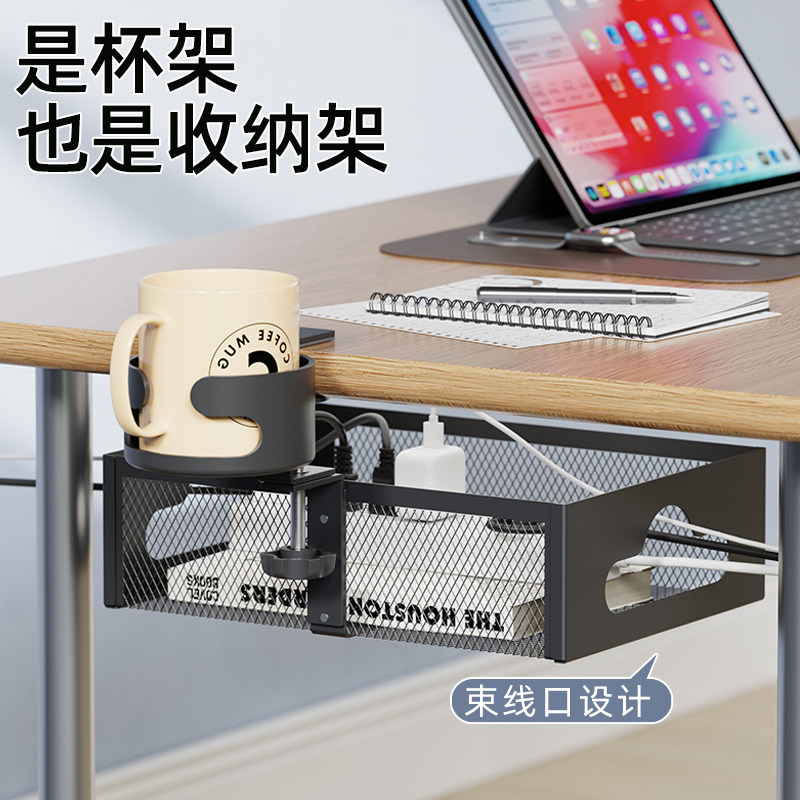 办公室桌面置物架旋转杯架挂架收纳篮碳钢水杯托架电脑书桌边挂篮