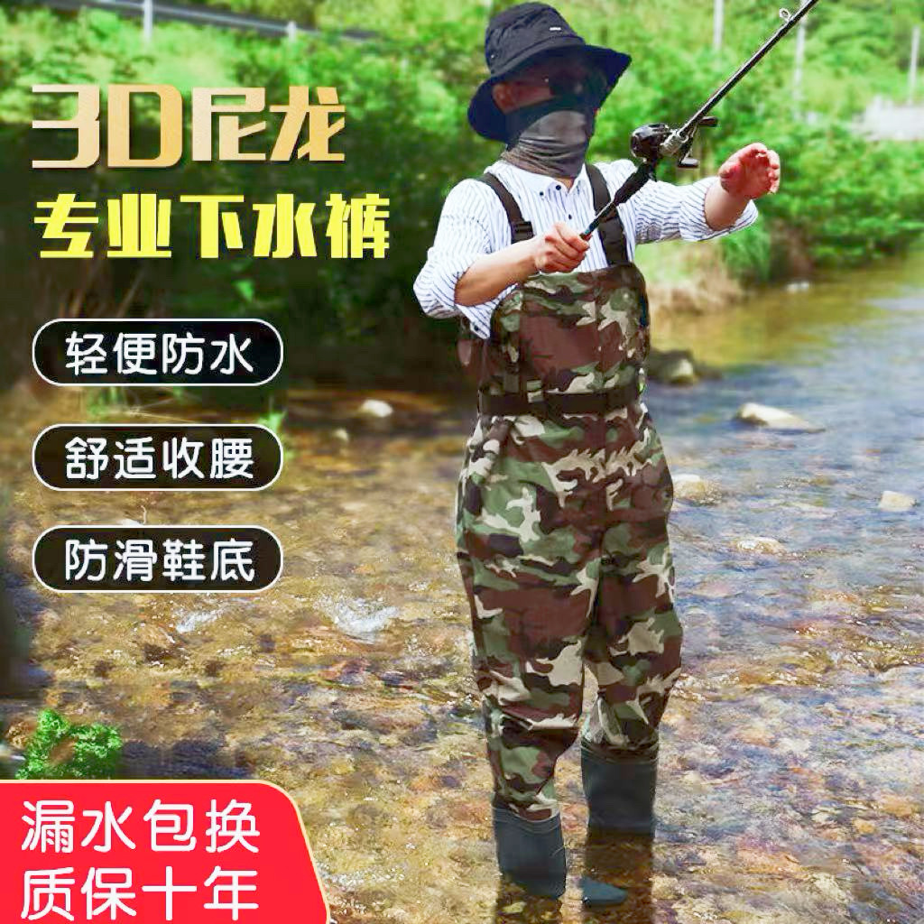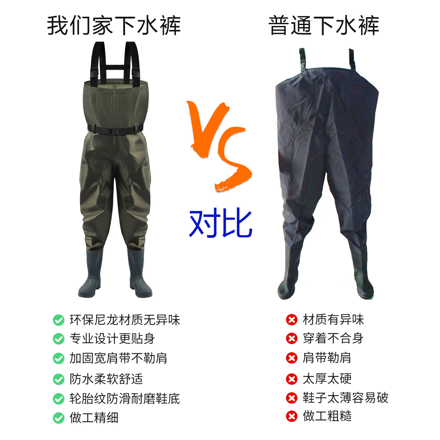 涉水裤 下水裤 牛筋路亚钓鱼服连体雨裤 半身全身防水新型下水裤 男款