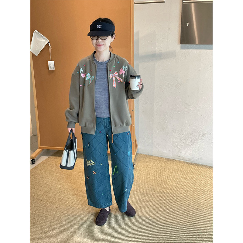 长裤 立体剪裁水洗做旧秋冬纯色直筒刺绣高级感修身 休闲裤 GTAL美式