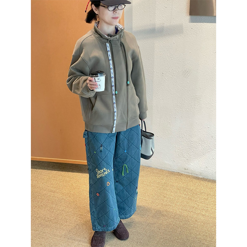 百搭拖地长裤 子宽松直筒阔腿裤 女秋冬加绒裤 pusumede软糯休闲裤
