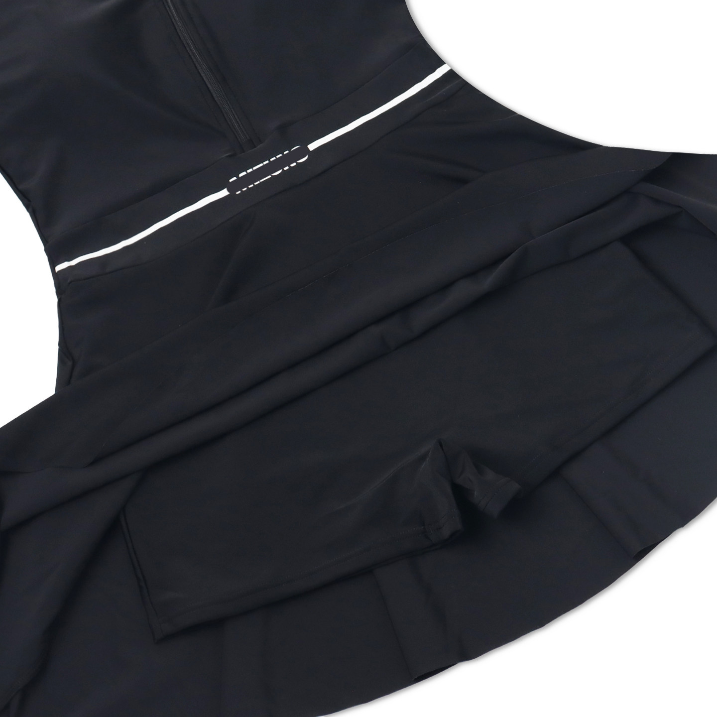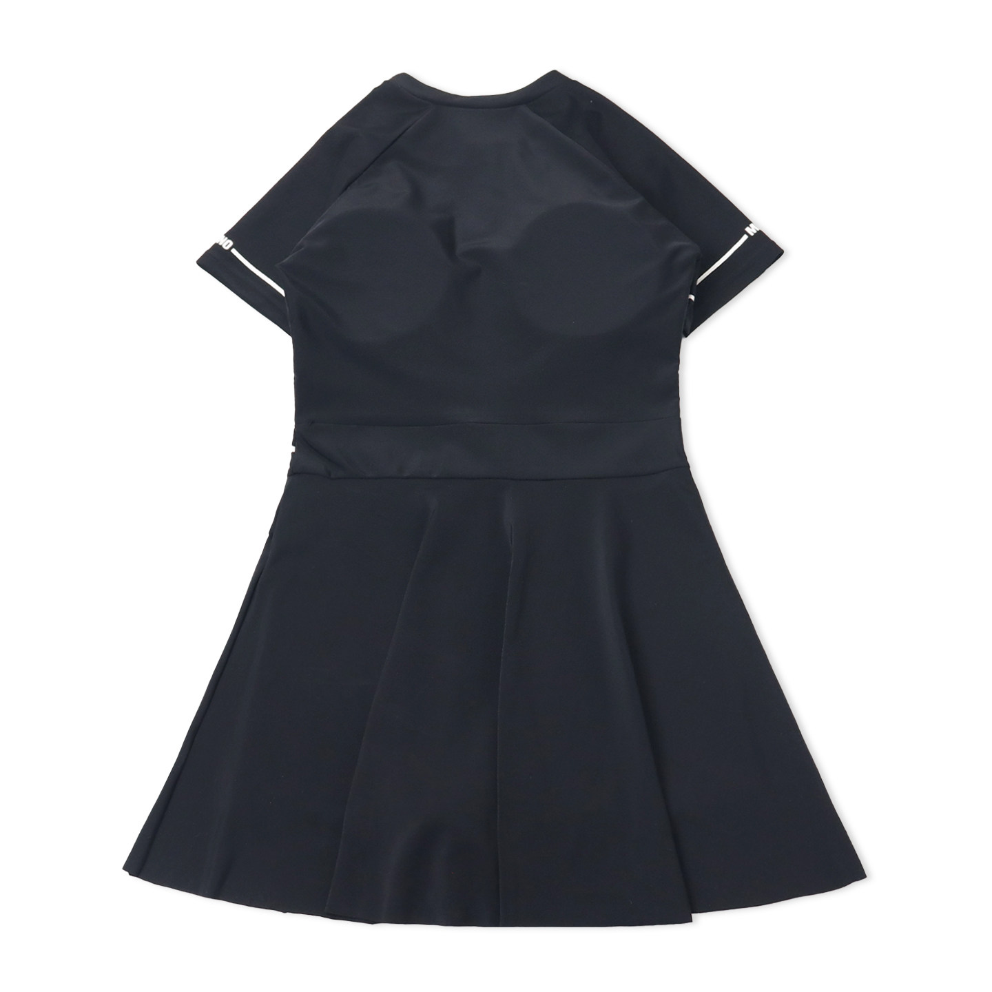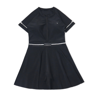 防晒短袖 连体泳装 保守平角泳衣 女士运动泳裙遮肉黑色裙式 出口新款