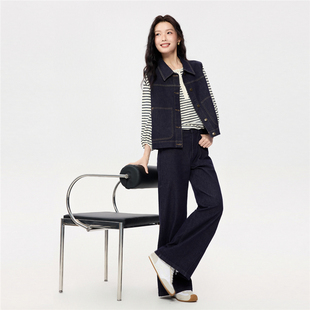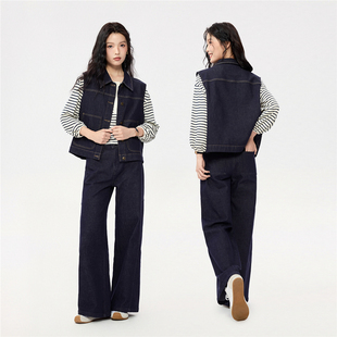 佐丹奴牛仔马甲女2026年春明线口袋宽松翻领无袖 牛仔外套05375670