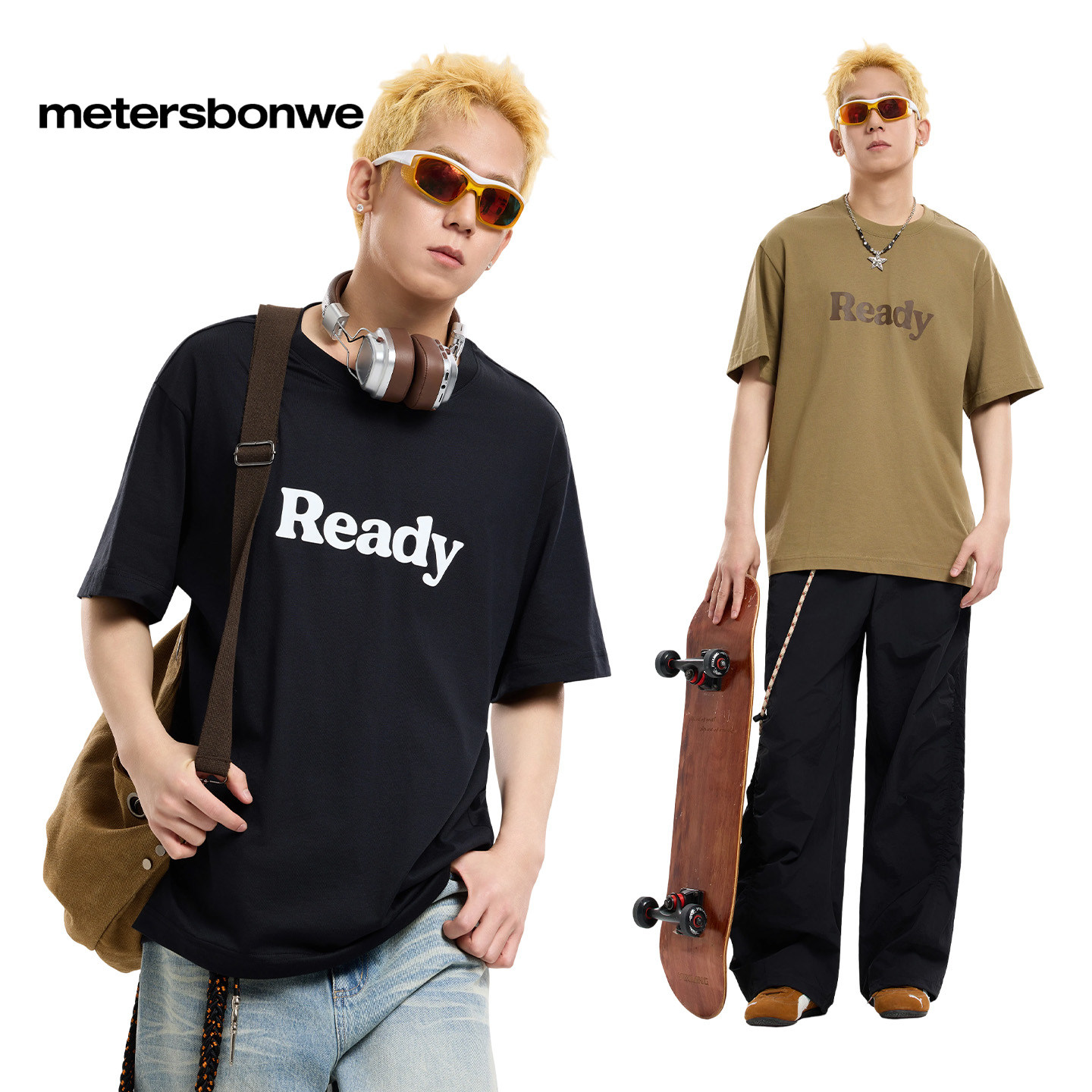 潮流休闲百搭字母撞色印花短袖 美式 体恤 新款 美特斯邦威T恤男夏季
