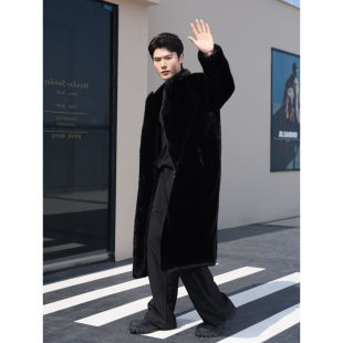 潮牌水貂毛皮草大衣男长款 过膝人造皮草外套加厚连帽毛绒风衣棉衣