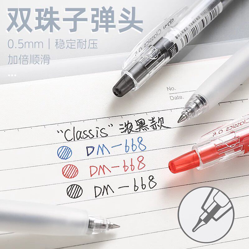 东米668双珠子弹头按动中性笔学生用刷题笔书写顺滑0.5mm黑笔红笔