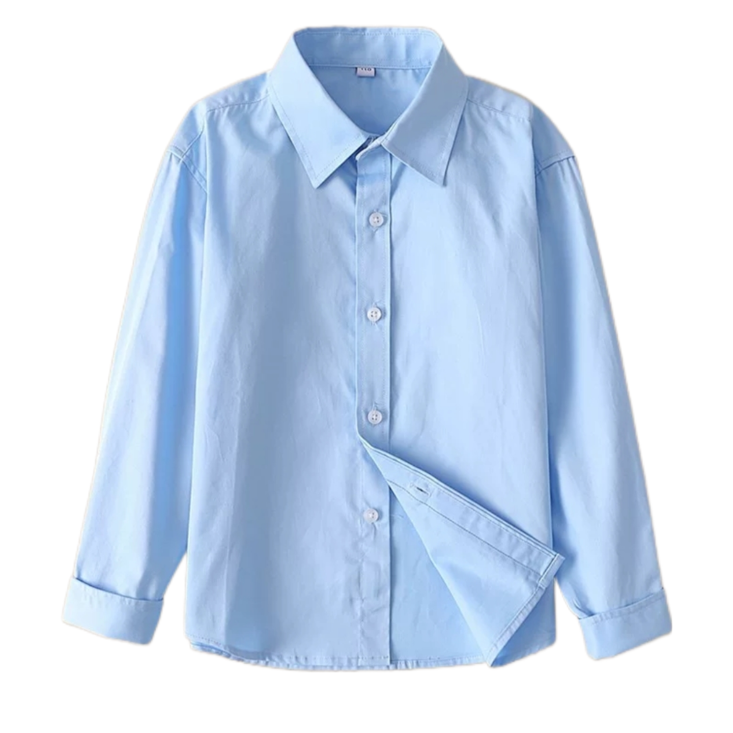 男童女童白色衬衣儿童蓝色寸衫 加绒衬衫 校服中大童长袖 学生白衬衫