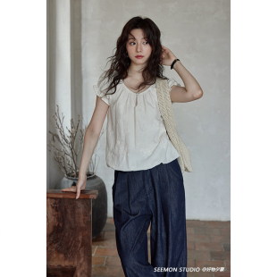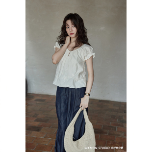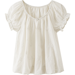 衬衫 夕蒙2026新款 小个子小众刺绣短款 独特上衣别致减龄小衫 夏法式