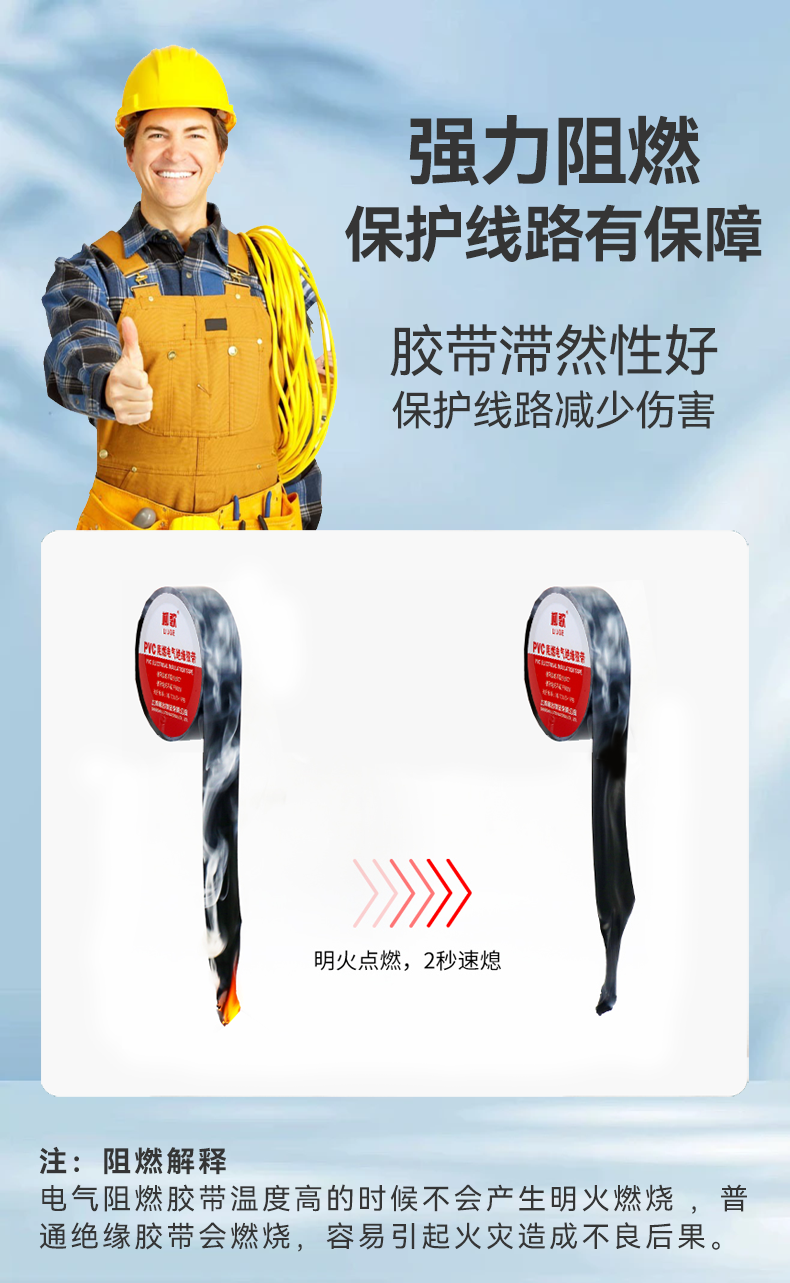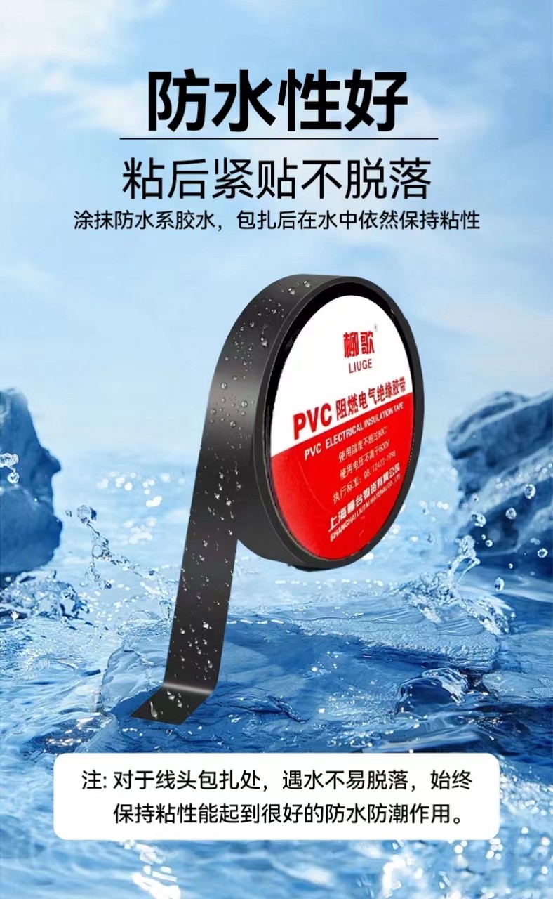 柳歌电工胶布PVC绝缘阻燃防水耐高温电线电缆电气黑防火电工胶带