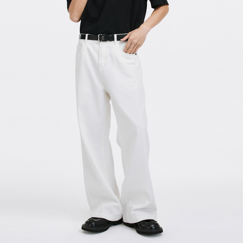 高腰提档修身 冬季 裤 子美式 白色加绒微喇牛仔裤 高街显瘦弯刀裤 男款