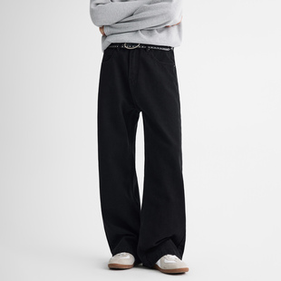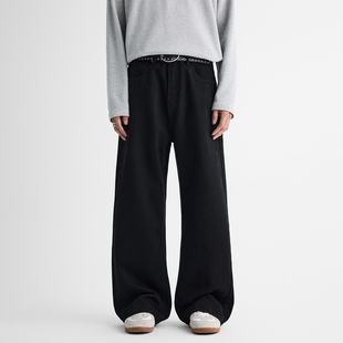 高腰加绒宽松拖地直筒裤 新款 子 女加绒2025年冬季 黑灰色阔腿牛仔裤