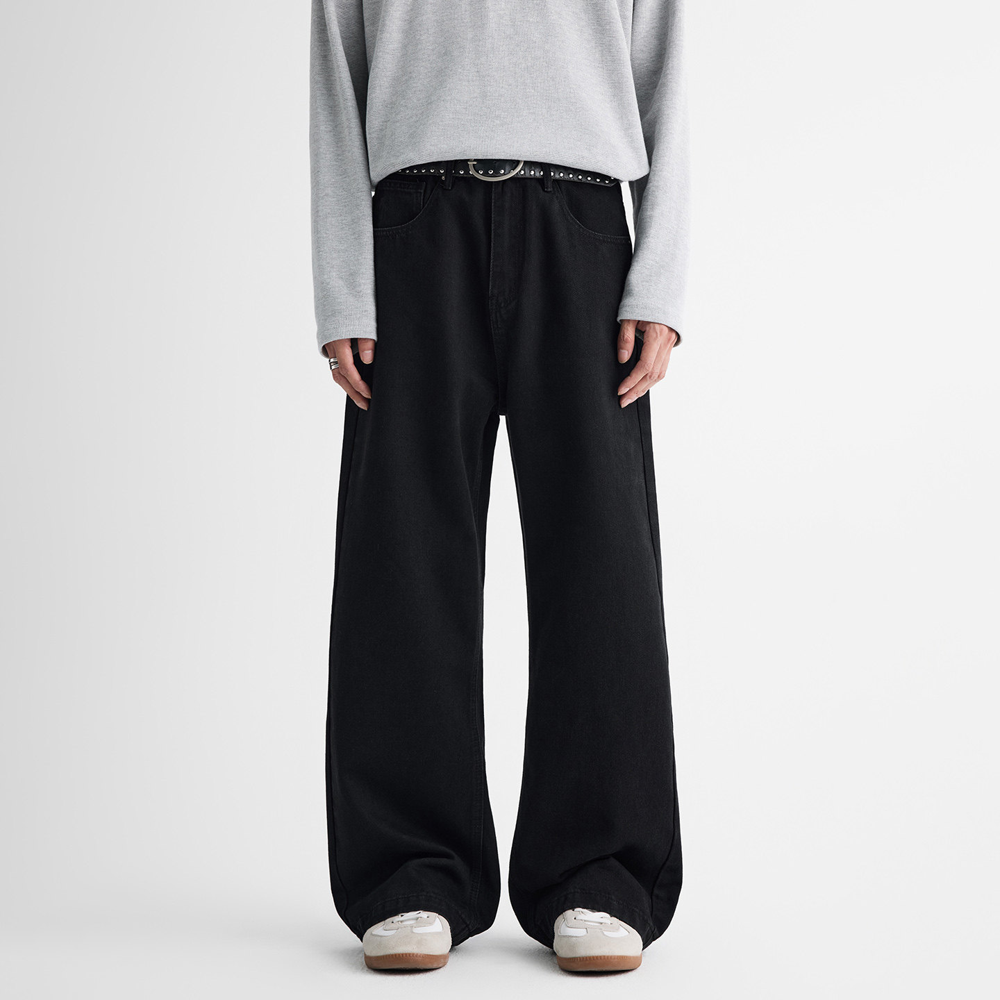 复古长裤 柴米黑色伐木洗水牛仔裤 男宽松直筒美式 裤 男阿美咔叽 工装