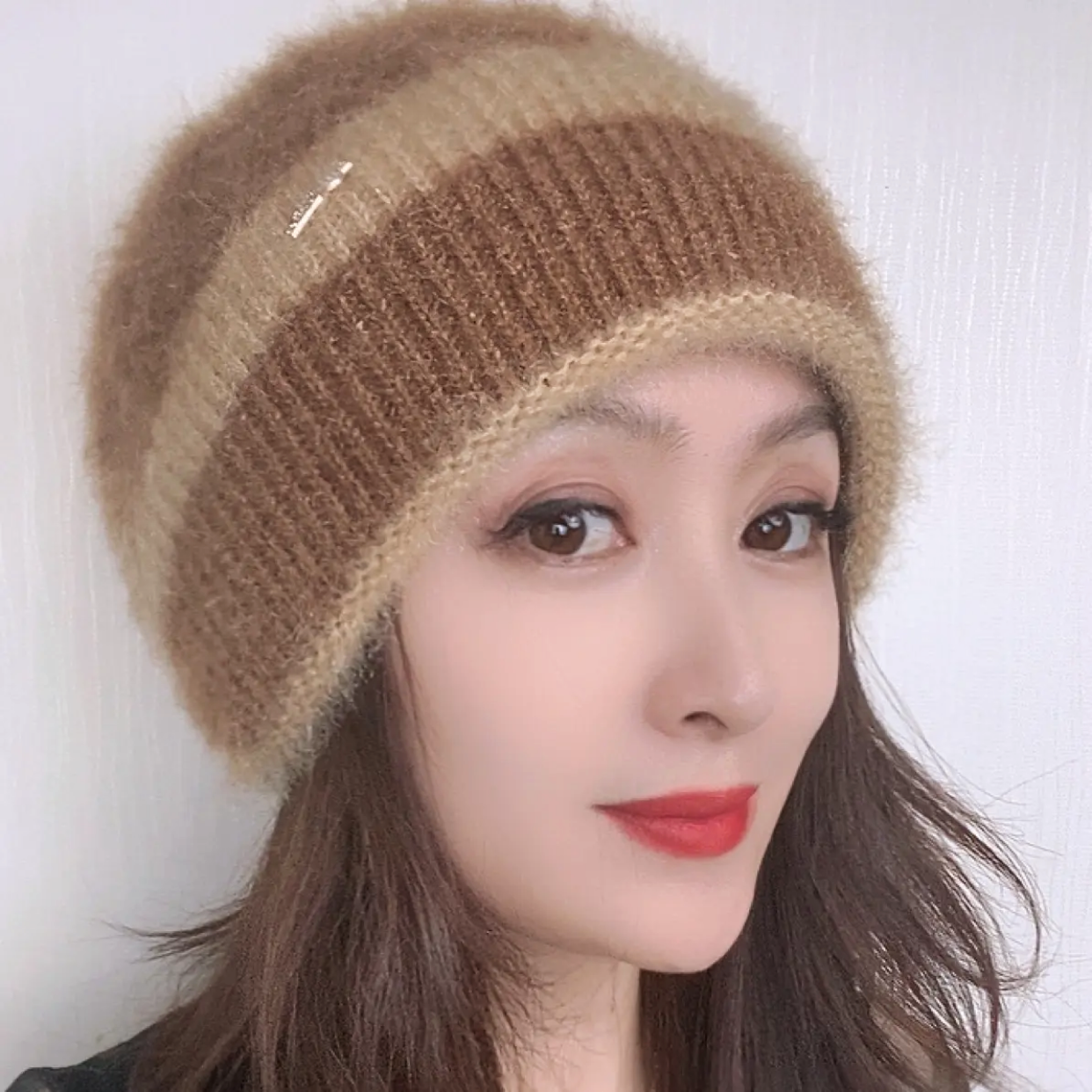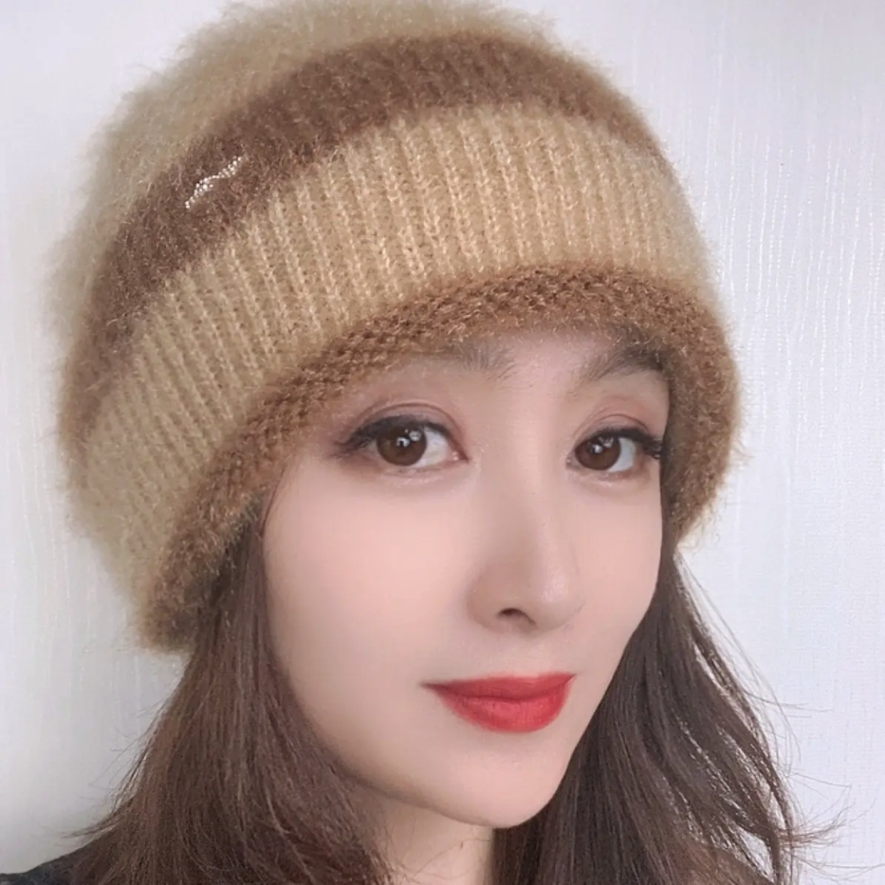 玖慕纯山羊绒帽子女秋冬护耳加厚保暖长绒冷帽针织毛线堆堆月子帽