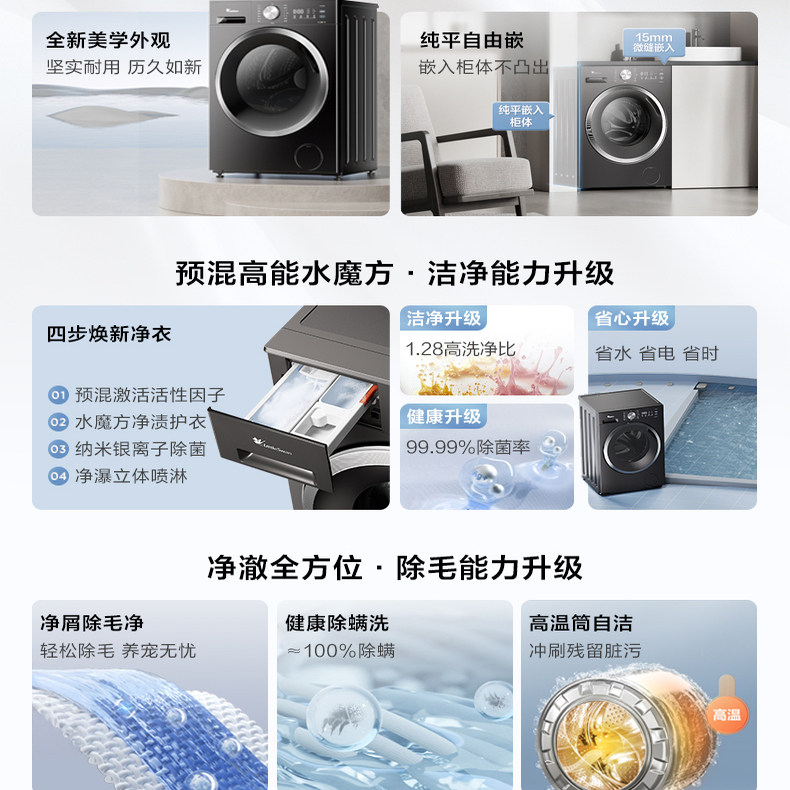 小天鹅水魔方滚筒洗衣机小乌梅超薄10公斤洗烘一体全自动家用3.0