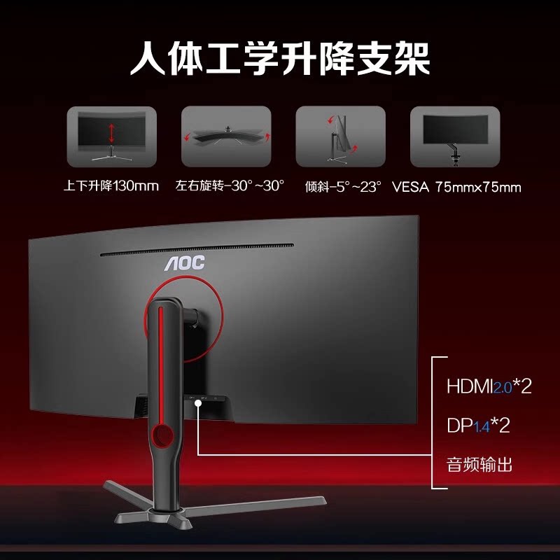 AOC曲面CU34G10X电竞34英寸带鱼屏准4K可升降壁挂165hz高清21 9屏