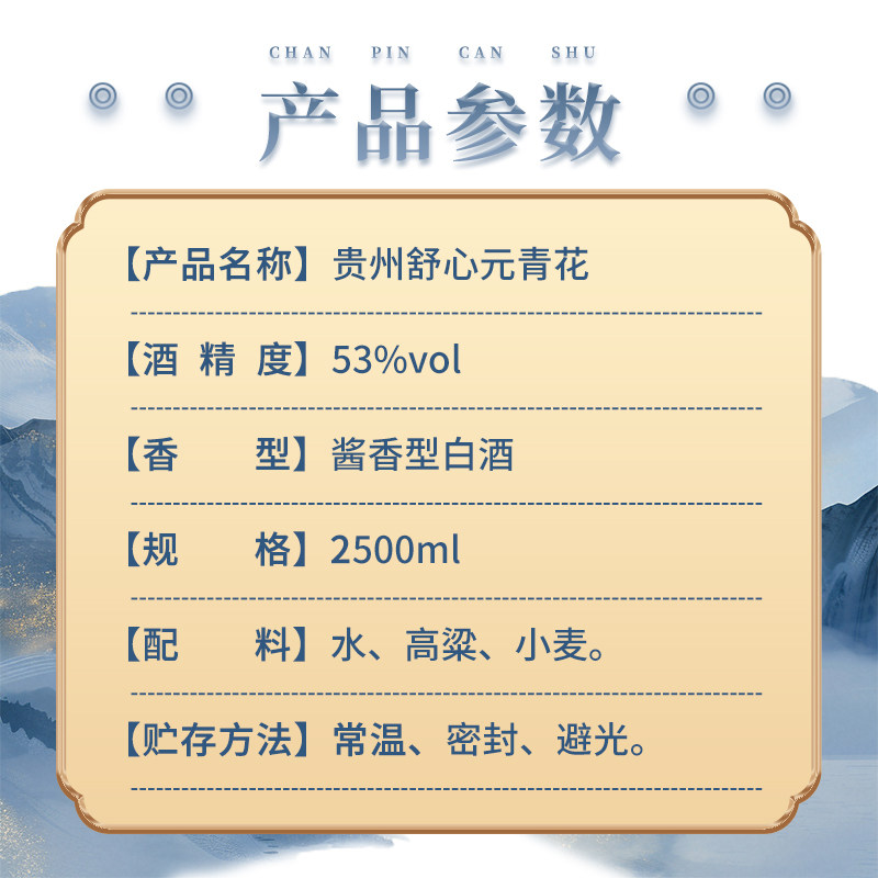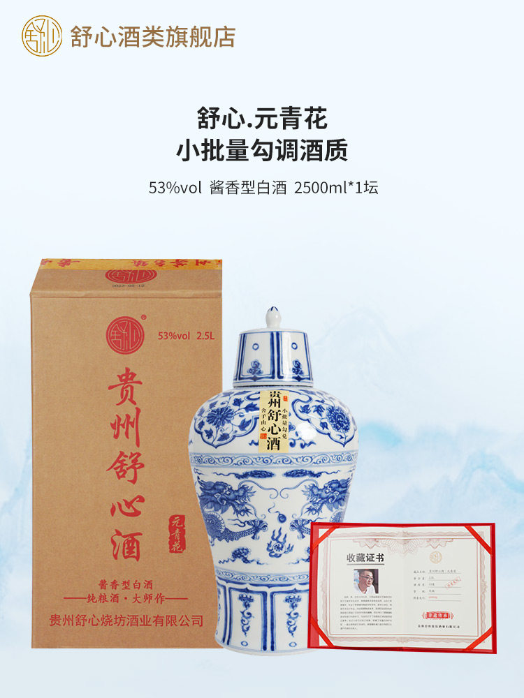 收藏送礼官方旗舰店正品 舒心元 青花53度酱香型白酒2500ml单瓶装