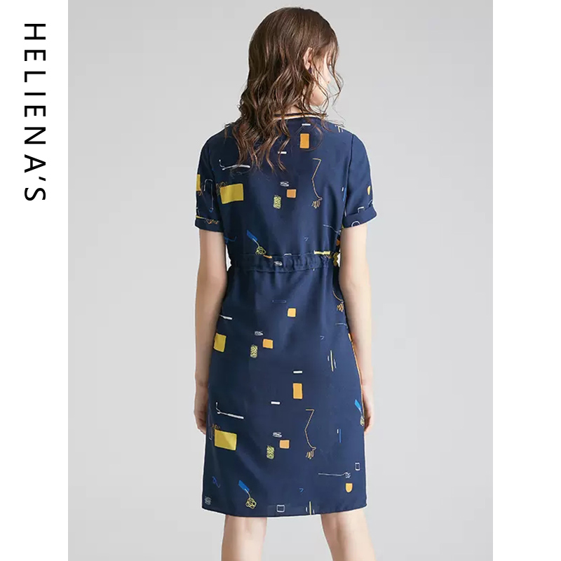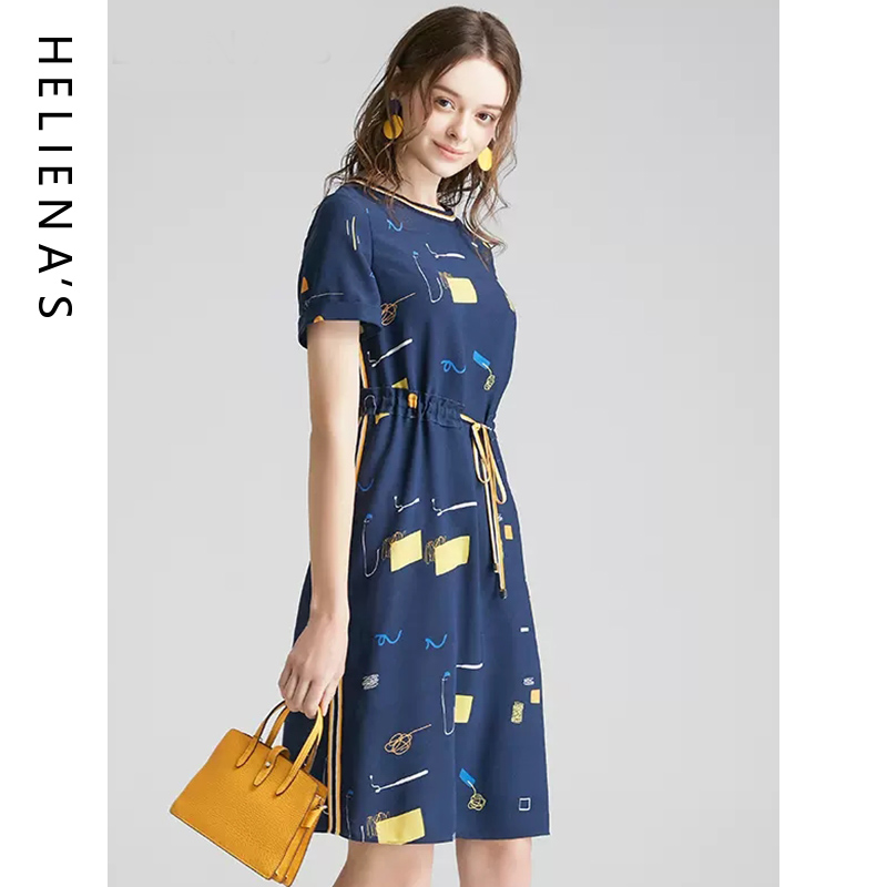 海兰丝碎花A字裙子新款 雪纺连衣裙 夏减龄印花系带显瘦中长款