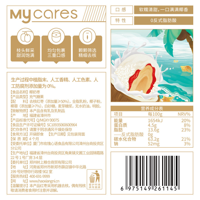 去核奶枣新疆红枣大枣零食独立小袋装 好想你_椰奶枣128g