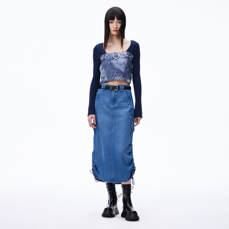 REVAN芮范设计师款 风天丝牛仔长裙RN71507142 工装